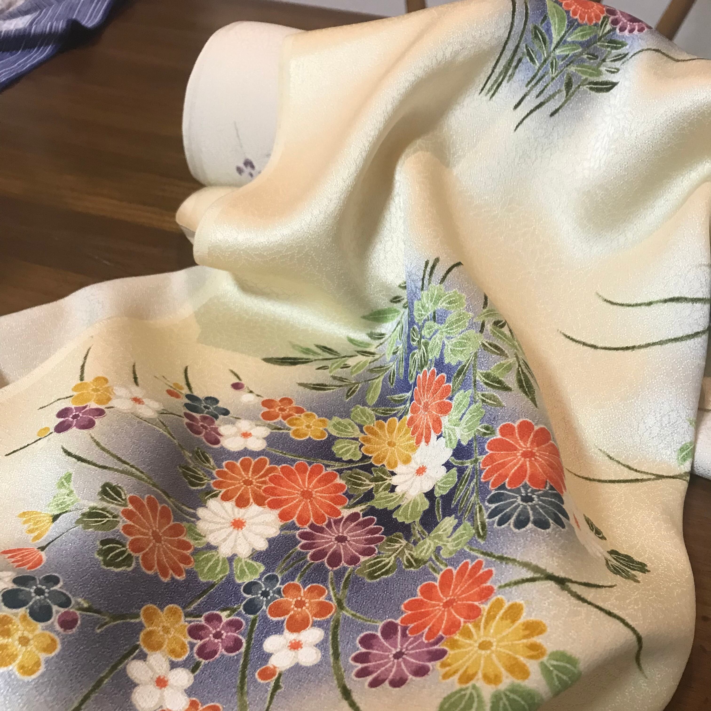 生地は正絹(シルク100%)着物地の反物を使用しています。