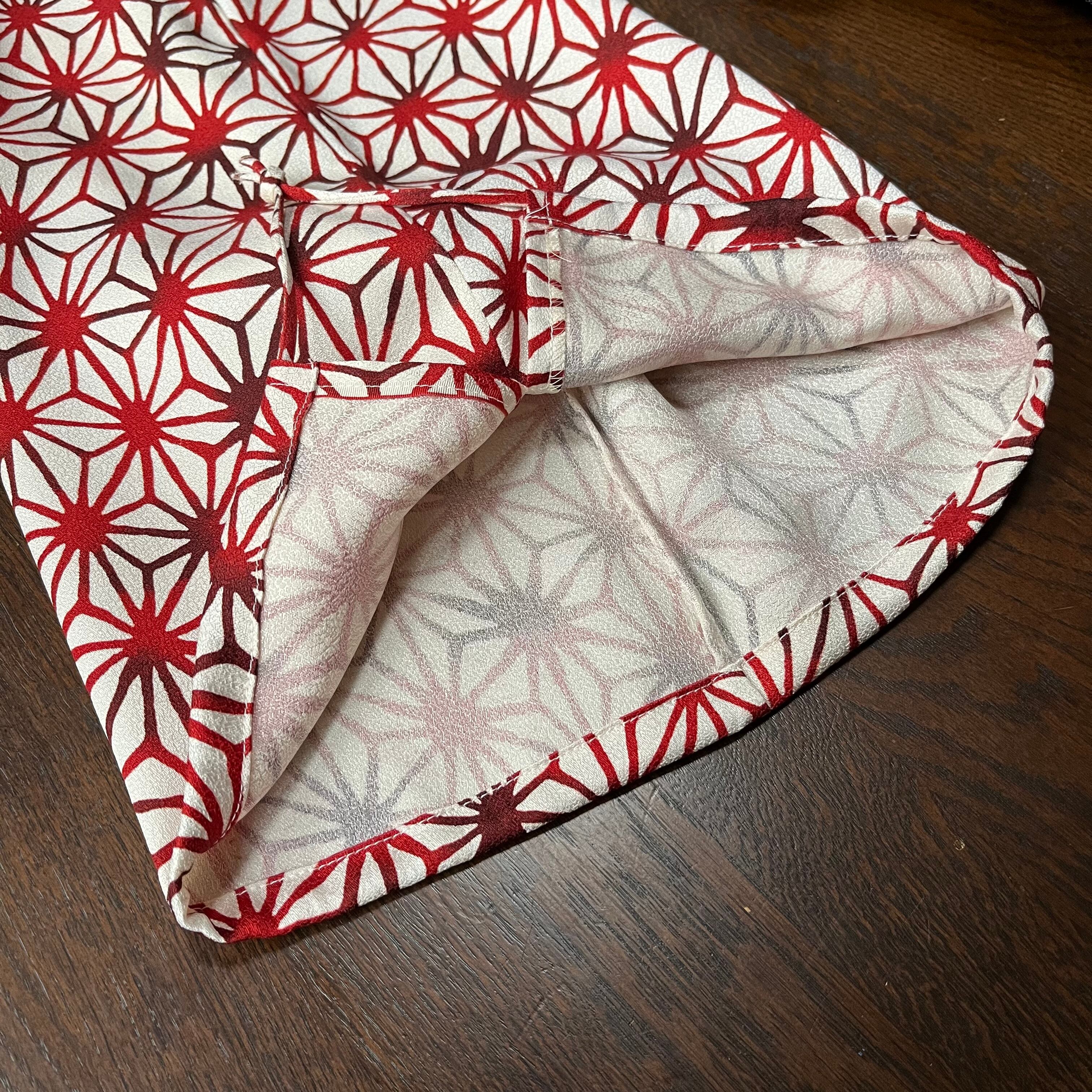 生地は正絹(シルク100%)着物地の反物を使用しています。