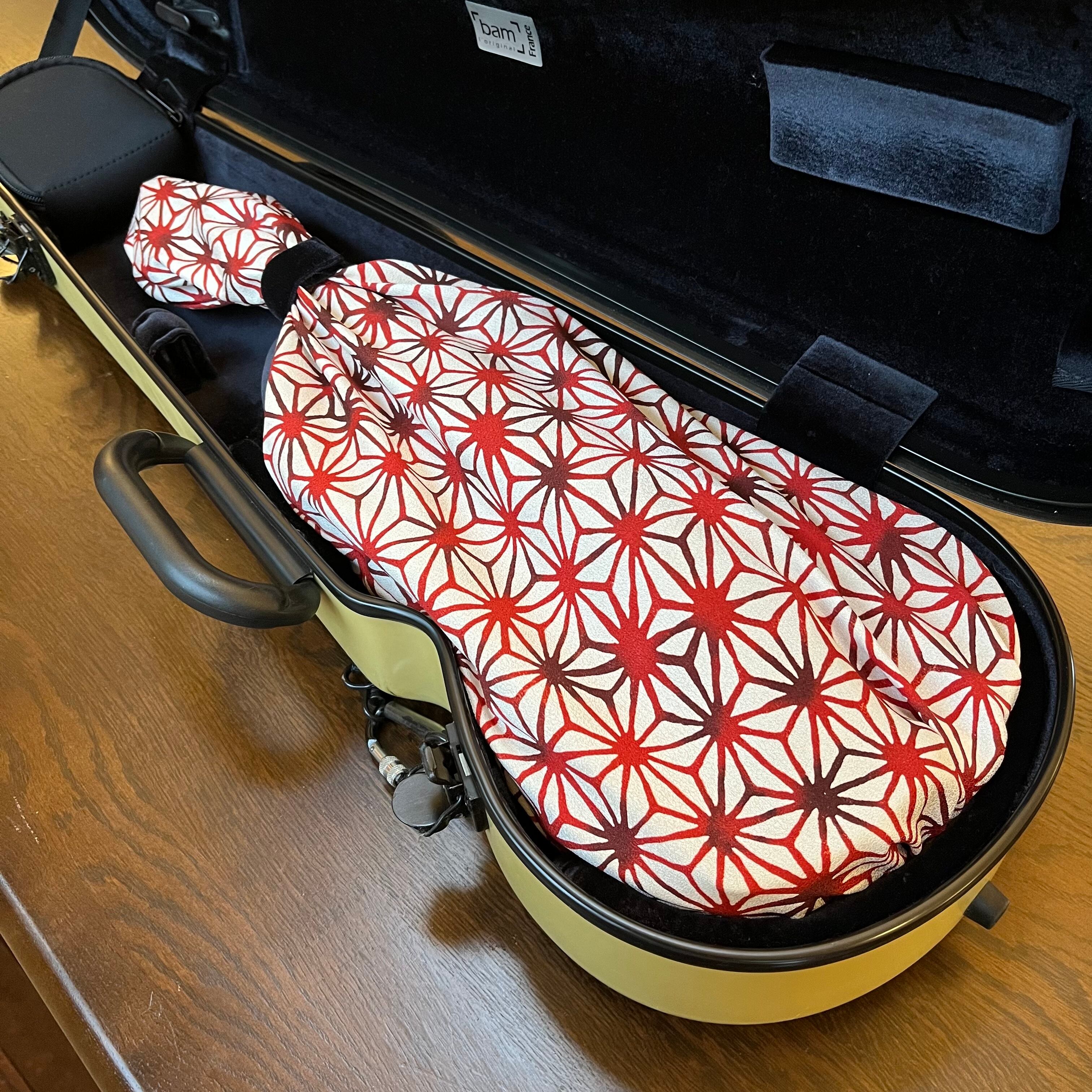 ヴィオラ用インナーバッグ(モダン麻の葉模様、クリーム地/正絹)