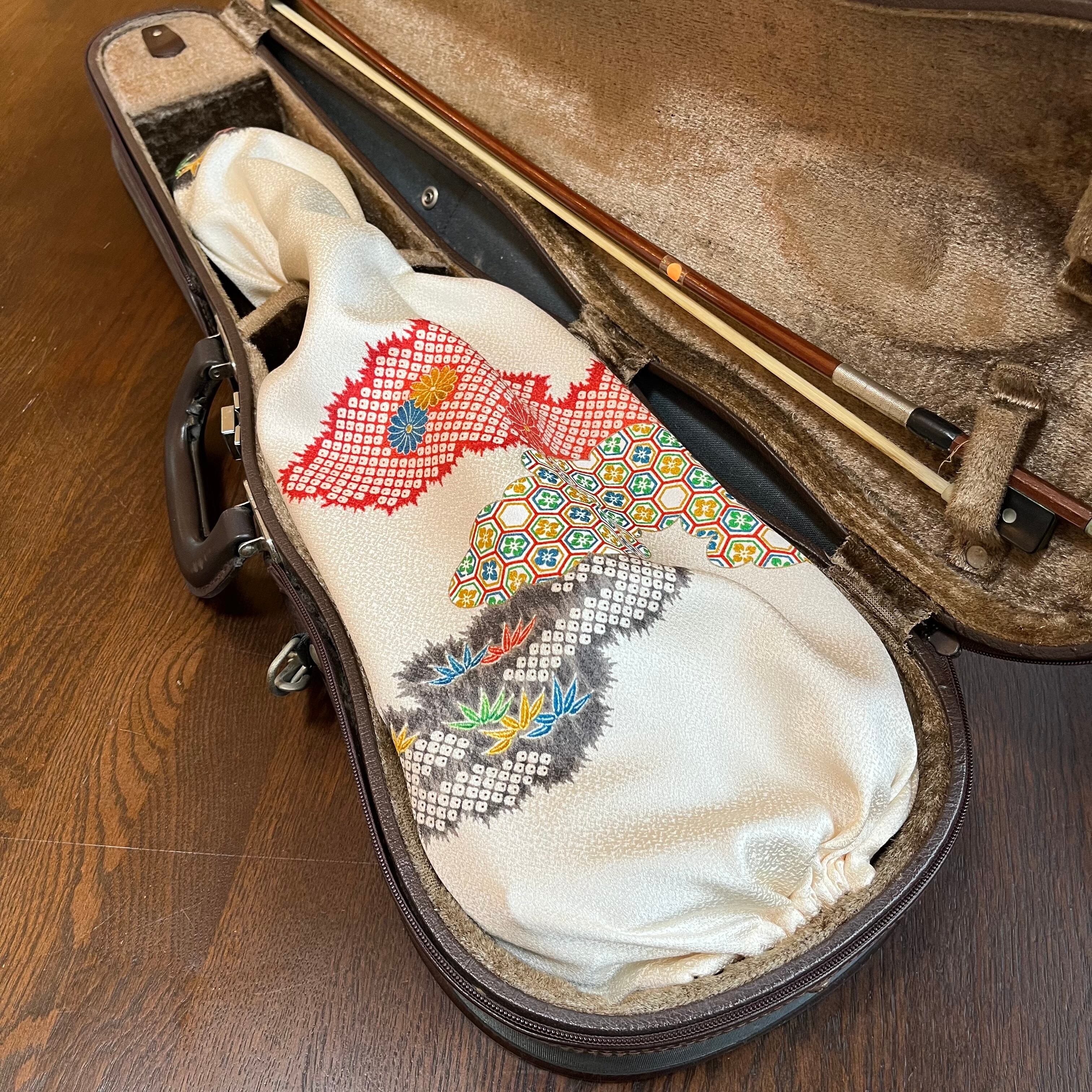 分数ヴァイオリン用インナーバッグ(雲取り模様、クリーム地/正絹)