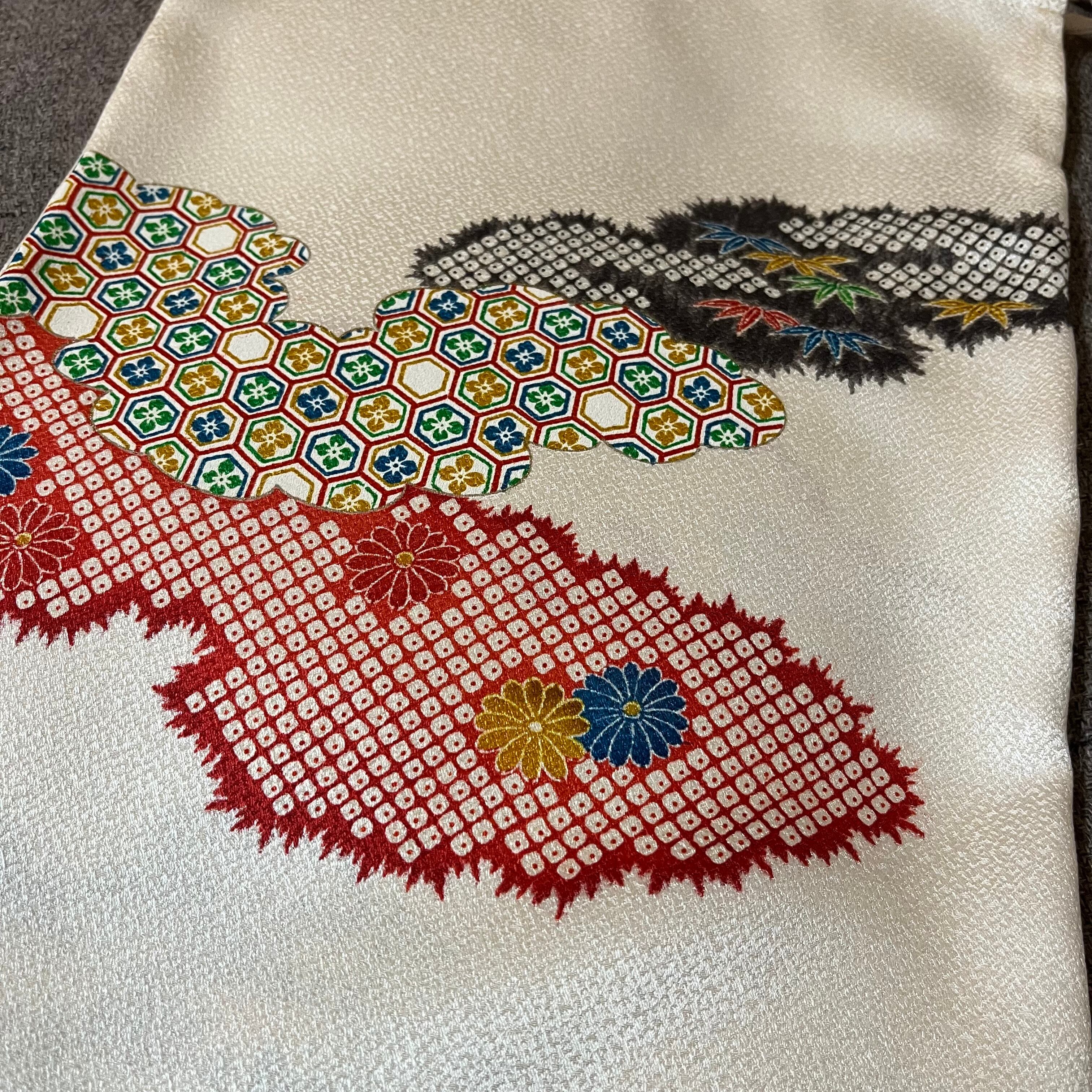 生地は正絹(シルク100%)着物地の反物を使用しています。