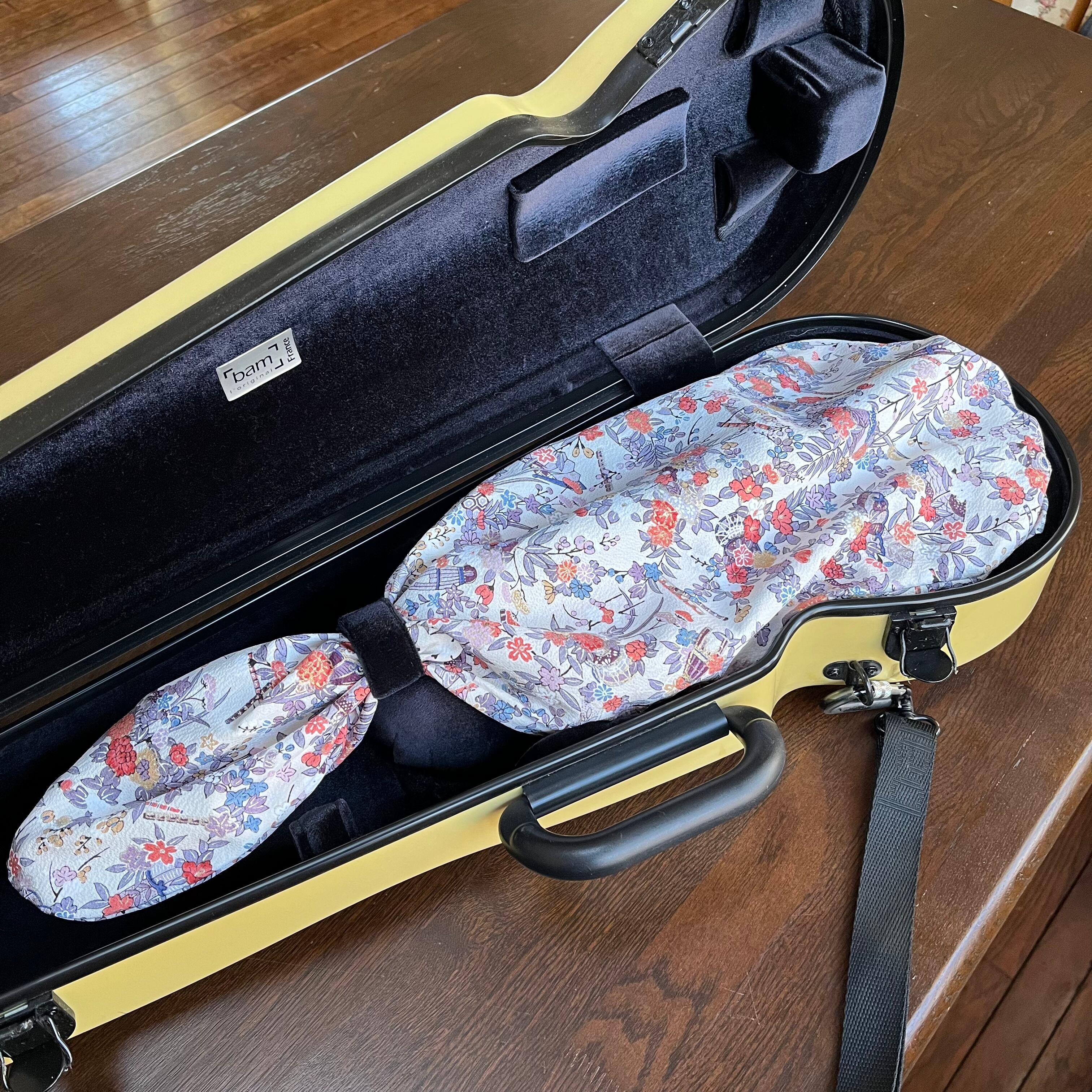 ヴィオラ用インナーバッグ(雅楽器・植物、白地/正絹)