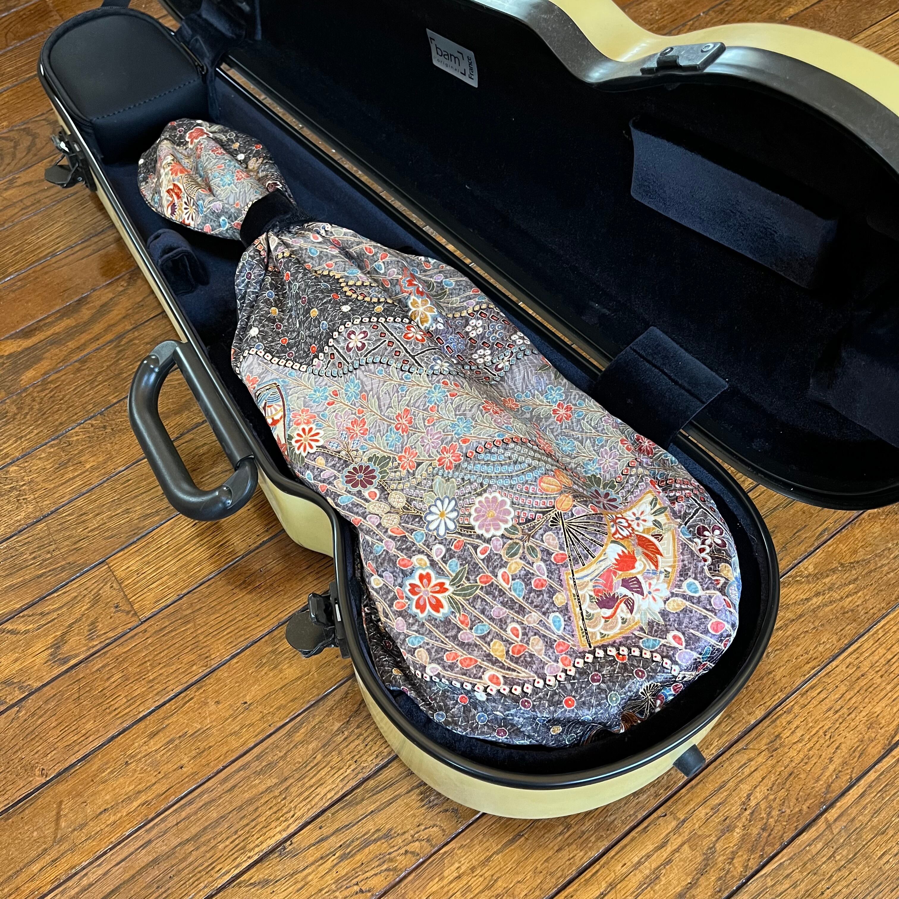 ヴィオラ用インナーバッグ(手絞り、グレー地/正絹)